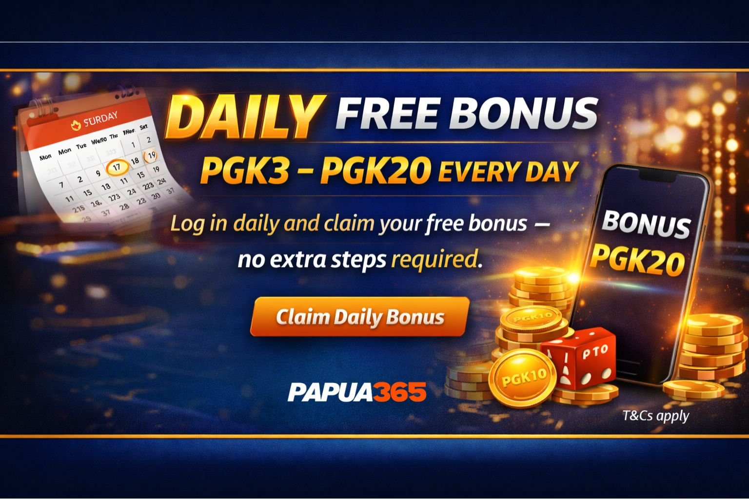 Daily Free Bonus [ PGK3 to PGK20 ]